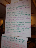 They also spent some time visioning about what they all meant by the practices of the solidarity economy. While on the one hand the list they generated (see below) contains a broad spectrum of big, daunting and fun ideas (begging the questions of where and how to start), the conversation led to a few interesting insights, including: